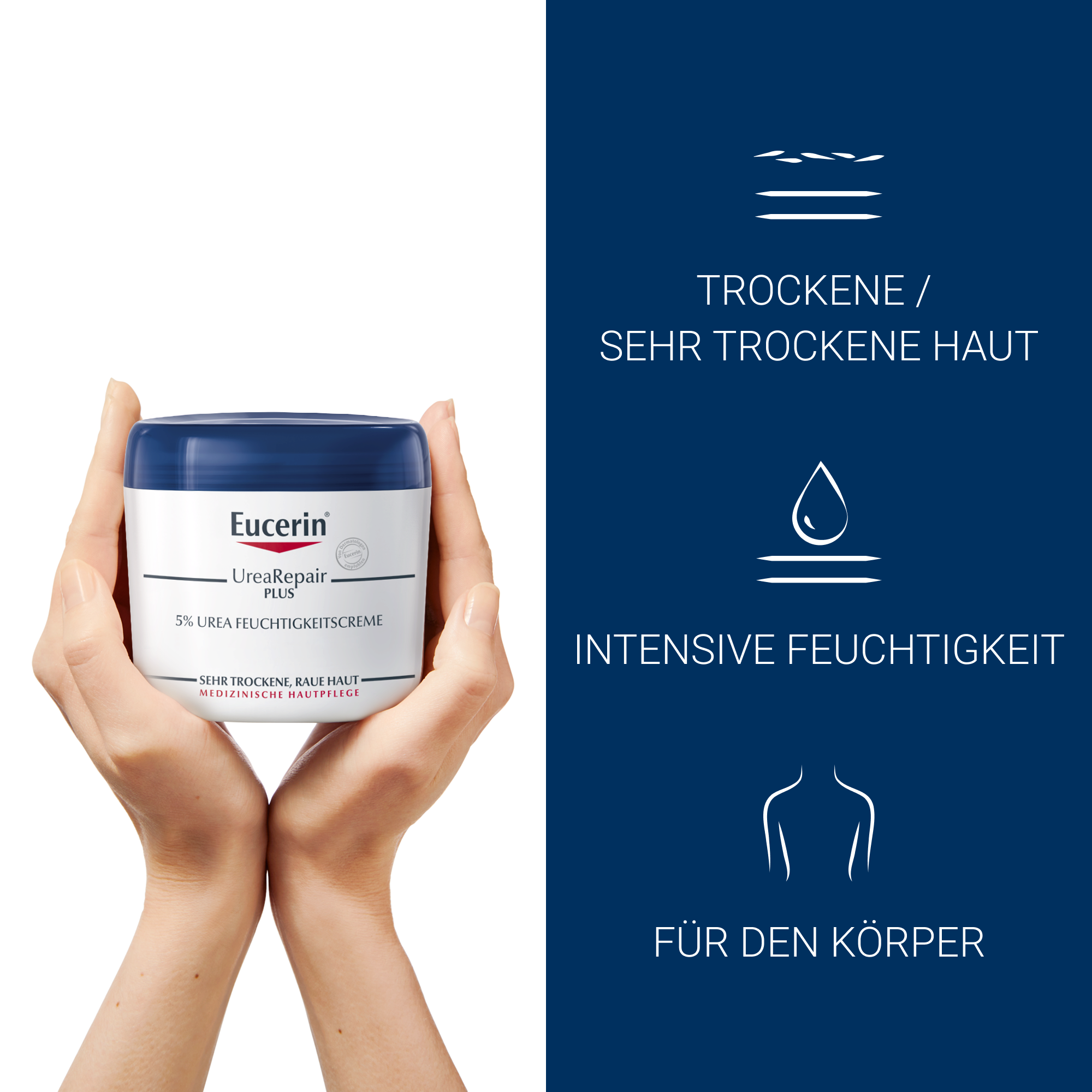Die Eucerin UreaRepair 5% Urea Feuchtigkeitscreme ist eine Pflegecreme für sehr trockene Haut und eignet sich für die Anwendung am gesamten Körper.